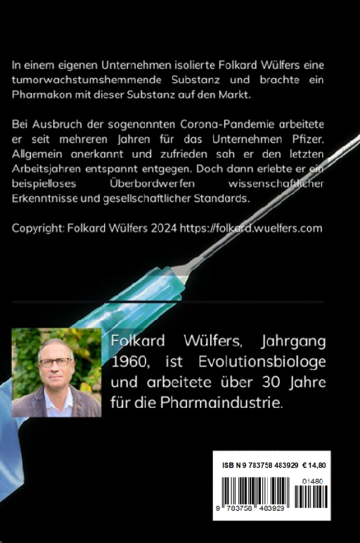 Bei Ausbruch der sogenannten Corona-Pandemie arbeitete er seit mehreren Jahren für das Unternehmen Pfizer. Allgemein anerkannt und zufrieden sah er den letzten Arbeitsjahren entspannt entgegen. Doch dann erlebte er ein beispielloses Überbordwerfen wissenschaftlicher Erkenntnisse und gesellschaftlicher Standards.